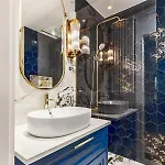 Riverview Apartment With Sauna - Old Town - Blue dysponuje miejscem do siedzenia z dźwiękoszczelnymi oknami oraz nowoczesnymi udogodnieniami, takimi jak TV i telewizja satelitarna. Obiekt obejmuje 1 sypialnię z poduszkami antyalergicznymi miękkimi lub twardymi. Obiekt noclegowy oferuje 1 łazienkę z kabiną prysznicową walk-in i oddzielną toaletą, a także suszarką do włosów i ręcznikami kąpielowymi.
